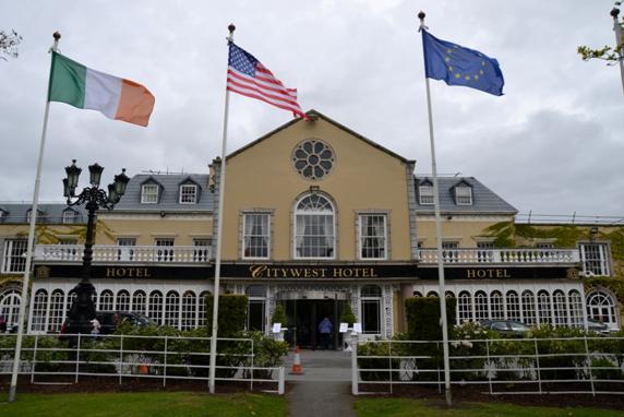 Die Fahrt führt uns zu unserem gebuchten Citywest Hotel & Golf Resort. Ein beeindruckendes Hotel im klassisch englisch / irischen Stil. Sehr groß und es herrscht Hochbetrieb: Es ist wohl Kommunionswochenende und sehr viele Familien begehen diese Feier in diesem schönen Hotel. Die Mädchen und Jungen sind prächtig herausgeputzt! Auch einige andere Veranstaltungen finden an diesem Wochenende statt und so ist es recht lebhaft. Die Zimmer sind jedoch groß und ordentlich. |