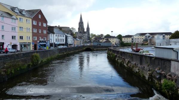 Heute sind wir etwas zeitiger aufgestanden, Frühstück um 8:30 Uhr. Auch hier ein großer Frühstücksraum, einige Dutzend Rentner belagern das Buffet. Wieder ein umfassendes Angebot. Alles prima und eine gute Grundlage für den Tag, der heute etwas freundlicher anfängt. Die Sonne scheint. Um 10:00 Uhr geht es von Waterford entlang der Südküste über Youghal in Richtung Cork, unserem ersten Zwischenstopp für heute. Wir finden auf Anhieb einen Park-platz im Zentrum und machen uns zu Fuß auf in die Stadt. Pünktlich zur Ankunft in Cork fängt es wieder an zu regnen. Cork mit seinen Flüssen, dem vielen Wasser und vielen Brücken hat als Stadt tatsächlich, wie in diversen Reiseführern beschrieben, etwas "holländisches" Flair. |