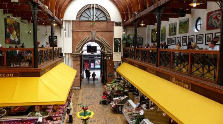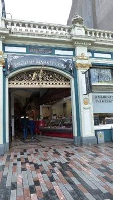 Unsere Zeit ist begrenzt, deshalb fällt eine ausführliche Stadtbesichtigung aus. Wir nehmen uns aber eine dreiviertel Stunde Zeit zur Besichtigung des schönen "English Market": Eine historische Markthalle mit fantastischem Angebot u.a. Gemüse, Obst, Fleisch, Fisch, Geflügel, Organic Food und allerlei Exotisches. Wir füttern in erster Linie unsere Augen und erstehen ein paar Mitbringsel für Zuhausegebliebene. |