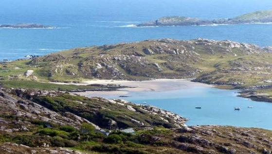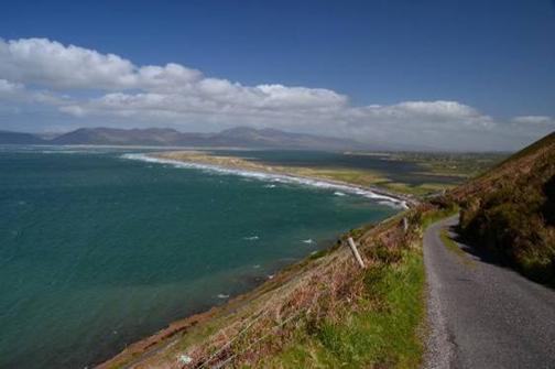 Wir setzen die Fahrt über Killorglin, Rossbeigh und Cahersiveen fort. Absolut bezaubernd ist die lange Landzunge (*Zungenbrecher*) des Rossbeigh Strand, die man auf der R564, abgehend vom Ring of Kerry, erreicht. Eine steinige, aber zugleich auch sandige Landzunge, deren Düne man erklimmen kann. Ein kurzer oder auch längerer Spaziergang ist eigentlich unabdingbar. Der Blick auf die Halbinsel Dingle gegenüberliegend und das türkisblaue Meer ist sagenhaft. Wenn man die Fahrt dann noch über die R564 Richtung Westen fortführt, wird man mit einem grandiosen Ausblick auf die Bucht aus der Vogelperspektive belohnt!! |