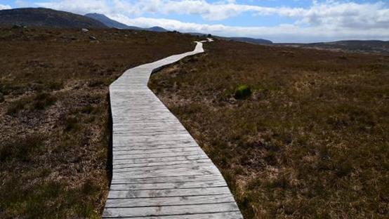 Attraktion in Glendalough sind die Reste einer mittelalterlichen Klosteranlage. Einige Gebäude sind noch gut erhalten, jedoch ist das Ganze sehr touristisch überlaufen. Viele Reisebusse parken in dem kleinen Ort und Hunderte Leute laufen zwischen den Gräbern des großen Friedhofs umher – ein bisschen seltsam, da der Friedhof auch aktuell noch genutzt wird. Wunderschön ist jedoch der Fußweg zu den beiden kleinen hinter Glendalough liegenden Seen. Auf Holzstegen geht es ca. 2-3 km über das sumpfige Gelände bis zu dem herrlich gelegenen See. Leider hatten wir keine Zeit mehr die Strecke zu laufen und sind stattdessen parallel auf der Straße gefahren |