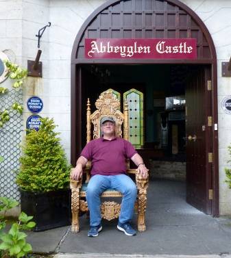 Die vielen Fotostopps und die ausgiebige Besichtigung der Cliffs of Moher haben viel Zeit geschluckt. Um 19:00 Uhr stellt sich heraus, dass wir noch 120 km Landstraße bis zu unserem Tagesziel Abbeyglen Castle in Clifden vor uns haben. Realistischerweise ist das vor 22:00 Uhr abends nicht zu schaffen und bis dahin sind alle Restaurants geschlossen. Wir rufen im Hotel an. Eine superfreundliche Mitarbeiterin am Telefon erklärt uns, dass eine späte Ankunft überhaupt kein Problem darstellt. Wir melden uns für 23:00 Uhr an und können uns so für die restliche Strecke noch etwas Zeit nehmen und den einen oder anderen Halt genießen. Unterwegs gibt es an der Peripherie von Galway im Restaurant mit dem goldenen "M" noch einen kleinen Snack. Während der Fahrt von Galway nach Clifden ist es bereits dunkel, sodass wir die Landschaft nur noch erahnen können - rechts und links der Strecke gibt es viele Seen. Kurz nach 23:00 Uhr erreichen wir Abbeyglen Castle und werden sehr herzlich empfangen und zu unseren Zimmern geführt. Toll, kein "echtes historisches“, aber dennoch beeindruckendes Schloss mit dazu passendem Inventar, riesigen Zimmern und Bädern. Wir bekommen das Zimmer direkt über dem Eingang mit dem großen Balkon. |