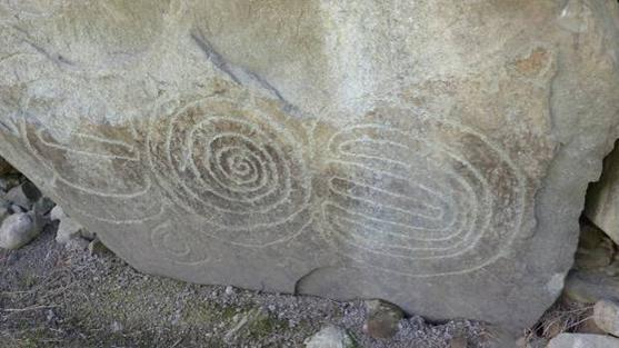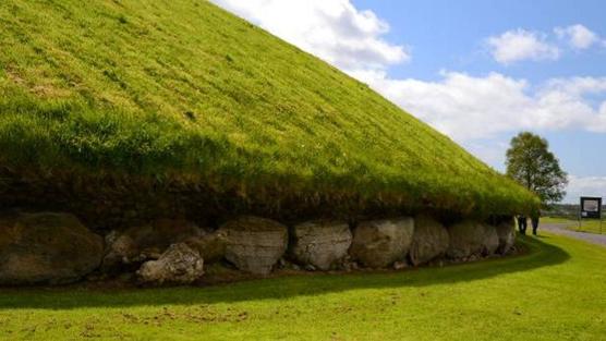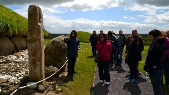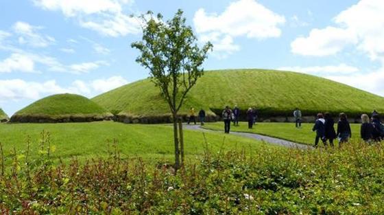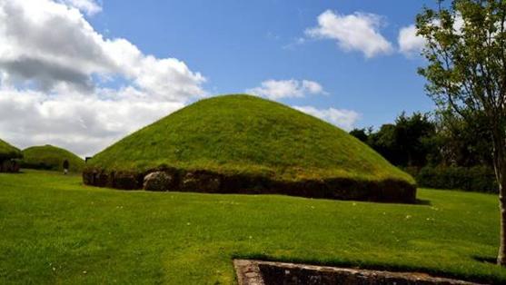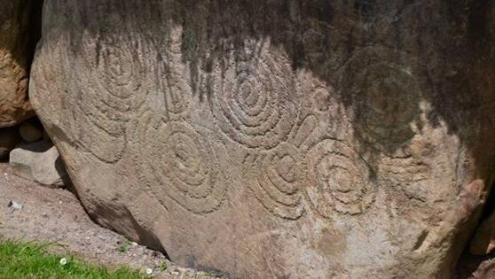 Mittelprächtiges Frühstück nach einer etwas unruhigen Nacht im Regency Hotel. Schlecht gelaunte und unmotivierte Mitarbeiter im Frühstücksraum - was auch an den beiden folgenden Tagen so ist. Eigentlich vollkommen untypisch für Irland... Heute steht eine Tour in das Gebiet nördlich von Dublin an. Wir wollen uns die Hügelgräber und Ausgrabungsstätten von Newgrange und Knowth ansehen. Es handelt sich um bis zu 5000 Jahre alte Stein- und Hügelgräber, die sehr gut erhalten sind bzw. teilweise restauriert wurden. Am Besucherzentrum für beide Ziele werden die Besuchermassen kanalisiert. Man kann geführte Touren buchen, die Teilnehmerzahlen sind beschränkt. Für Newgrange wäre nur noch eine Besichtigung am Nachmittag möglich. Für Knowth hingegen beginnt eine geführte Tour bereits eine dreiviertel Stunde später, sodass wir uns für diese Tour entscheiden. Im Bus werden wir zur Anlage gefahren und treffen dort auf eine sehr freundliche und kompetente Führerin. Die Besichtigung dauert etwa 1 Stunde und ist sehr interessant – Informationen über die Geschichte der Anlage und die Nutzung des Geländes während der letzten Jahrtausende. Der große Haupthügel der Anlage in Knowth hat einen Durchmesser von ca. 95 Meter und ist fast 10 Meter hoch. Er ist auf einem Kreis von 127 mehr als 2 Meter langen Basissteinen aufgebaut. Die Steine sind größtenteils mit sehr schönen und gut erhaltenen eingravierten Ornamenten verziert. Daneben gibt es noch 20 weitere kleinere Hügelgräber. Unglaublich, was die Menschen damals mit bescheidenen Hilfsmitteln und einfachen Werkzeugen geleistet haben! |