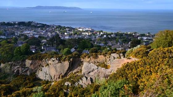 Danach geht es gemächlich weiter an der Küste Richtung Norden. Am Killiney Hill legen wir einen weiteren Stopp ein. Nach einem kurzen knackigen Anstieg vom Killiney Car Park aus wird man mit einem super schönen Ausblick belohnt! Auf dem Hügel überblickt man die irische See, das nördlich gelegene Blackrock, den Fährhafen und die Dublin Bay. Wenn jetzt die Sonne noch scheint – phänomenal. Die Kamera glüht wieder. So wie es scheint, ist der felsige Park auch eine beliebte Spielwiese bei Kletterern. |
