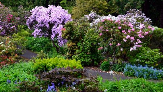 Jetzt um die Jahreszeit blüht der Rhododendron und eine Reihe anderer Büsche und Sträucher - in 4 Wochen wird es wahrscheinlich noch schöner. |