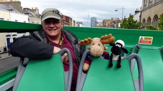 Und last but not least der einzig authentische Reiseteilnehmer mit Ursprung auf den britischen Inseln, Shaun das Schaf. Auch Shauns Alter ist unbekannt, aber wir denken er ist im besten Halbstarkenalter. Da Ole Einar so einsam auf dem Sofa bei uns zu Hause sitzt, hatte eine liebe Nachbarin ein Einsehen und brachte uns eines Tages dieses seltsame Schaf vorbei. Seitdem begleitet Shaun seinen Kumpel Ole Einar auf den vielen Reisen – obwohl die beiden sich nicht immer mögen... Shaun freut sich, in Irland ganz viele seiner Artgenossen zu treffen. |